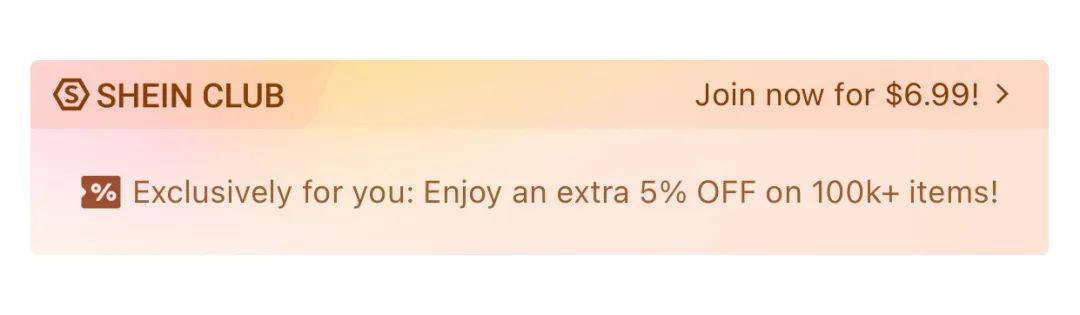 「新熵」獨家獲悉,SHEIN于近期開始在美國本土試水會員制,推出了“SHEIN CLUB”,用戶每季度花費6.99美元,可享受10萬余件商品的專屬95折優(yōu)惠以及其他折扣。SHEIN在其他國家和地區(qū)暫未推出會員制,但預測未來也會逐漸推出。