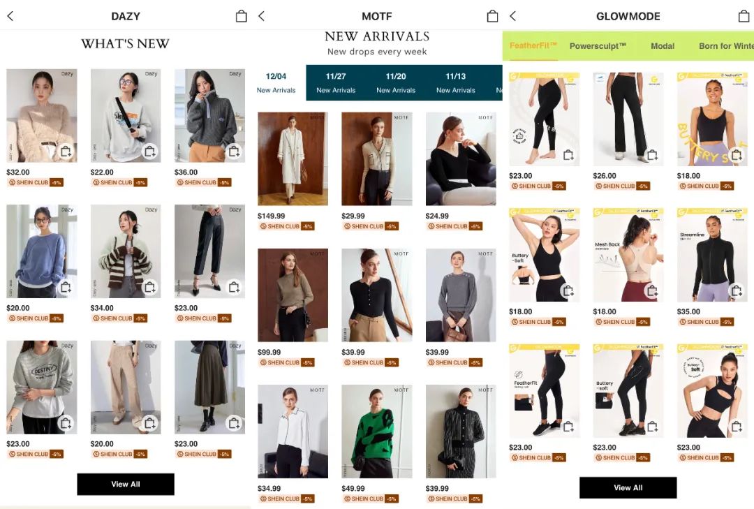 近兩年,SHEIN推出了十余個子品牌,包括年輕快時尚ROMWE、高端服裝MOTF、歐美快時尚EMERYROSE、韓系服裝Dazy、運動時尚GLOWMODE、內衣品牌Luvlette、彩妝品牌SHEGLAM、鞋履品牌CUCCOO、寵物品牌PETSIN等等。