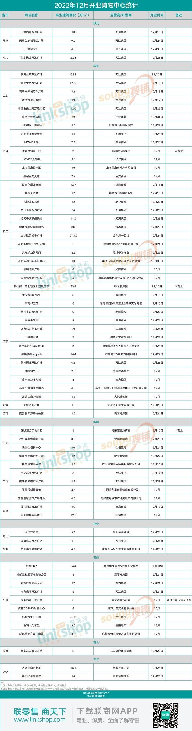 附:2022年12月全國將開購物中心統(tǒng)計表