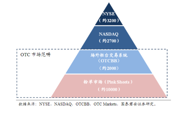 上圖為美國資本市場的結(jié)構(gòu)圖,粉單市場處于美國資本市場的最底層,里面多數(shù)都是本身無法定期提出財務報告或重大事項報告,而被強制下市或者下柜的公司。更直白的說法,這類股票被稱為“垃圾股票”。