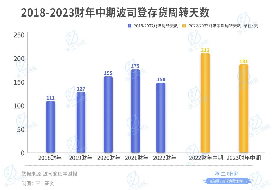 對于2023財年上半年181天的存貨周轉(zhuǎn)天數(shù),波司登解釋為:庫存周轉(zhuǎn)天數(shù)的下降主要是集團(tuán)在堅持維持較低首次訂單比例;同時,持續(xù)堅持拉式補貨調(diào)節(jié)機制,有效推進(jìn)全渠道商品一體化運營管理,有效優(yōu)化了期初和期末的庫存水平。