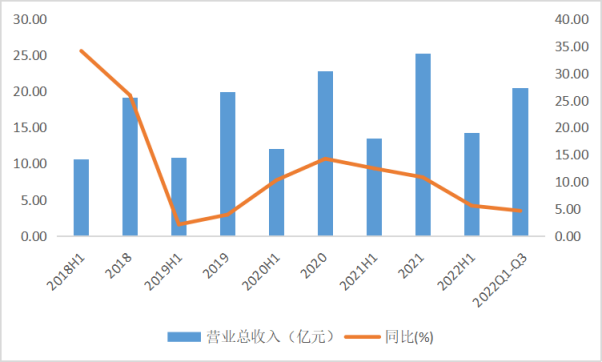從趨勢上看,涪陵榨菜總營收保持增長,但營收增速持續(xù)放緩。在2021年11月啟動新一輪提價后,由于消費者對新價格體系需要逐步接受的過程,同時受疫情、宏觀環(huán)境影響下游需求疲軟,前三季度涪陵榨菜錄得營收20.46億元,同比增長4.63%,增速同比、環(huán)比分別下滑4.1pct及0.95pct。其中,第三季度營收6.24億元,同比增長2.54%,增速環(huán)比下滑12.44pct。