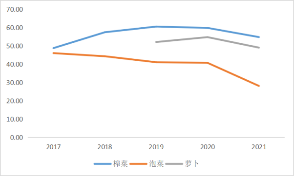 更重要的是,相比榨菜行業(yè)的逐步見頂,蘿卜、泡菜兩大品類的市場集中度還有較大的提升空間。相比榨菜主要原材料青菜頭培育條件苛刻,醬腌菜蘿卜、泡菜的主要原材料蘿卜、白菜在種植條件及擴大產(chǎn)能等方面均更易實現(xiàn)。