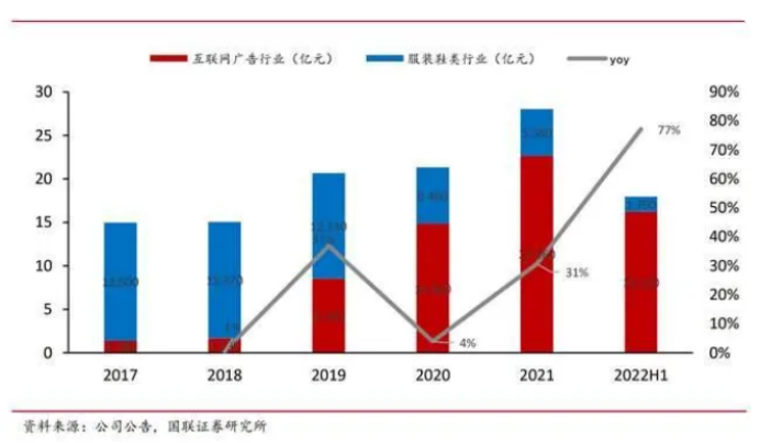 財報顯示,星期六的鞋服類收入占比2017年為90.48%,互聯(lián)網廣告業(yè)務占比為9.2%;2021年數(shù)據(jù)轉變?yōu)樾愂杖胝急?9.12%,互聯(lián)網廣告業(yè)務占比上升至80.62%。鞋履業(yè)務全年處于經營虧損狀態(tài),由于加大對鞋類庫存促銷,致使存貨可變現(xiàn)凈值所用的平均售價下降,全面計提提壞賬準備及存貨跌價準備約3.15億元!爸辈ル娚獭眲t成為公司現(xiàn)金奶牛業(yè)務。