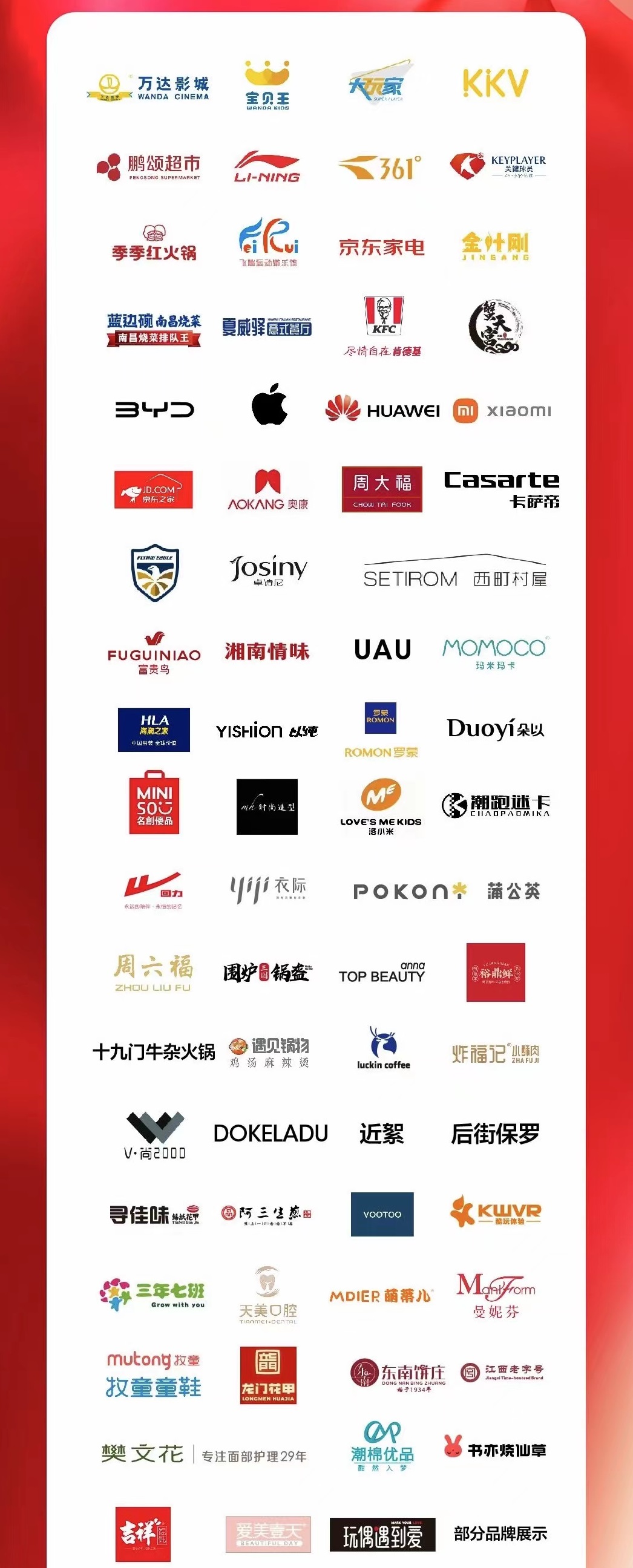 包括萬達(dá)寶貝王、萬達(dá)影城、大玩家、KFC、李寧,KKV、鵬頌超市、羅蒙、蒲公英、COCO、瑪米瑪卡、KEYPLAYER、藍(lán)邊碗、夏威驛、綠草地、鸚悅薈、紅谷、牧童等品牌均已入駐。