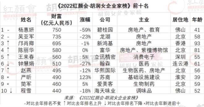 12月12日,胡潤研究院發(fā)布《2022胡潤女企業(yè)家榜》。此次榜單的上榜門檻為140億元人民幣,計(jì)算截止時(shí)間是2022年9月15日。