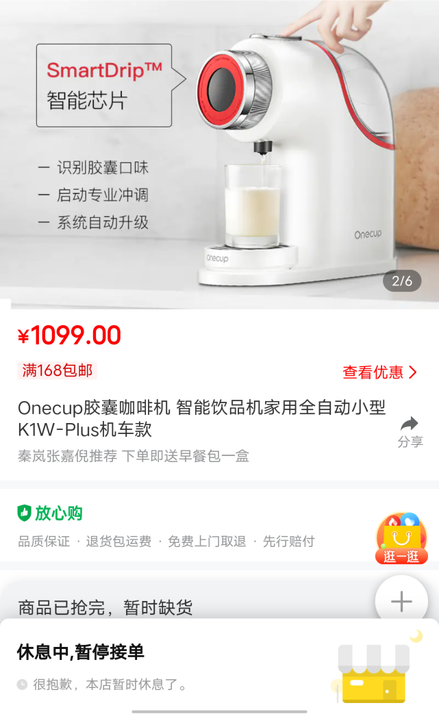 Onecup天貓旗艦店客服表示,店內(nèi)飲品保質(zhì)期在9個月至18個月之間,目前在售的膠囊大概是8月左右生產(chǎn)的,建議按照需求適量囤貨。