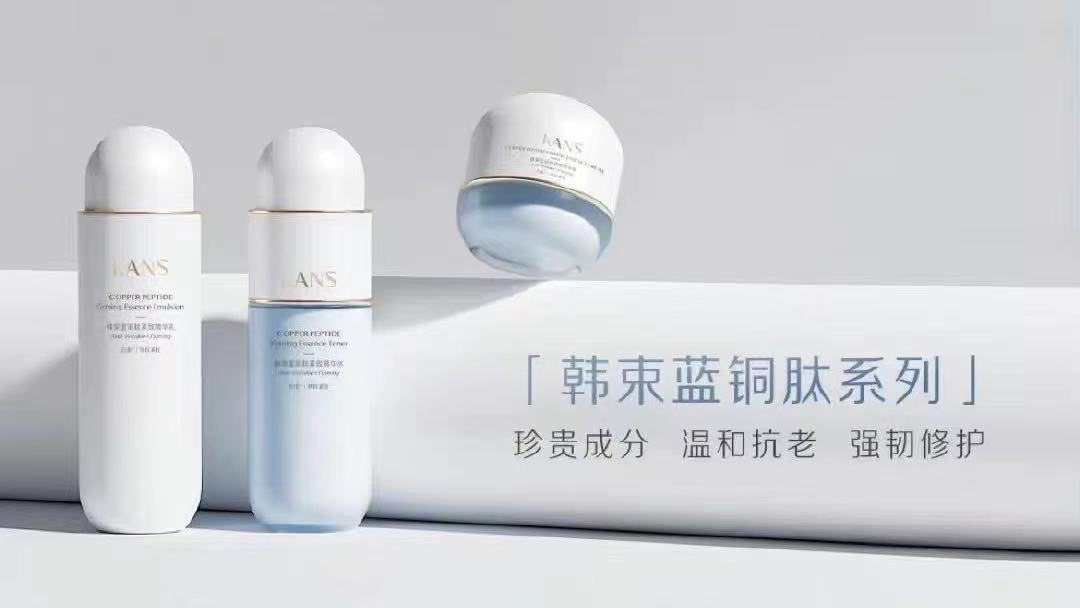 韓束也推出了藍銅勝肽系列產(chǎn)品,希望能在抗衰領域?qū)ふ彝黄瓶。而該系列能否講好新故事,獲得消費者認可,仍需時間驗證。