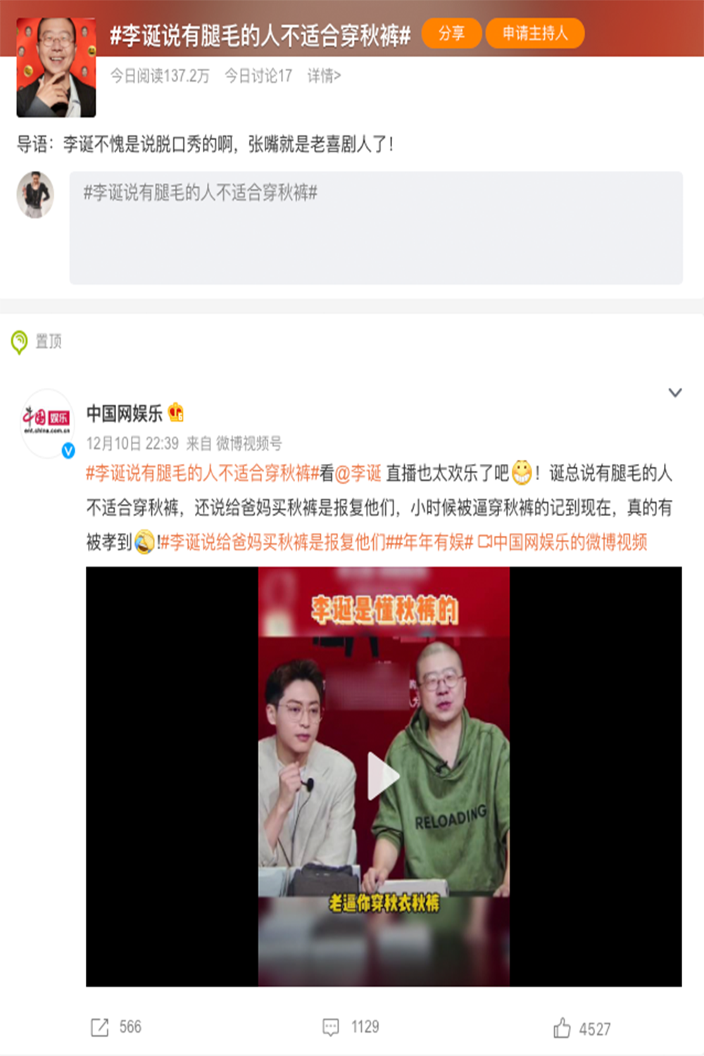李誕直播產(chǎn)生有關秋褲的詞條