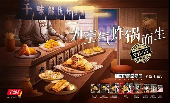 其中一個引人注目的是主打空氣炸鍋美食的“千味解憂炸貨鋪”,為空氣炸鍋而生踩中了現(xiàn)在年輕人做飯的痛點。