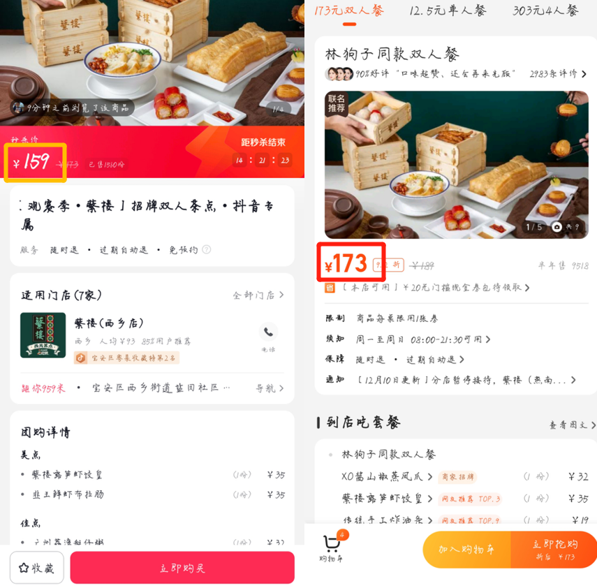 (團(tuán)購(gòu)套餐,左抖音,右美團(tuán))
