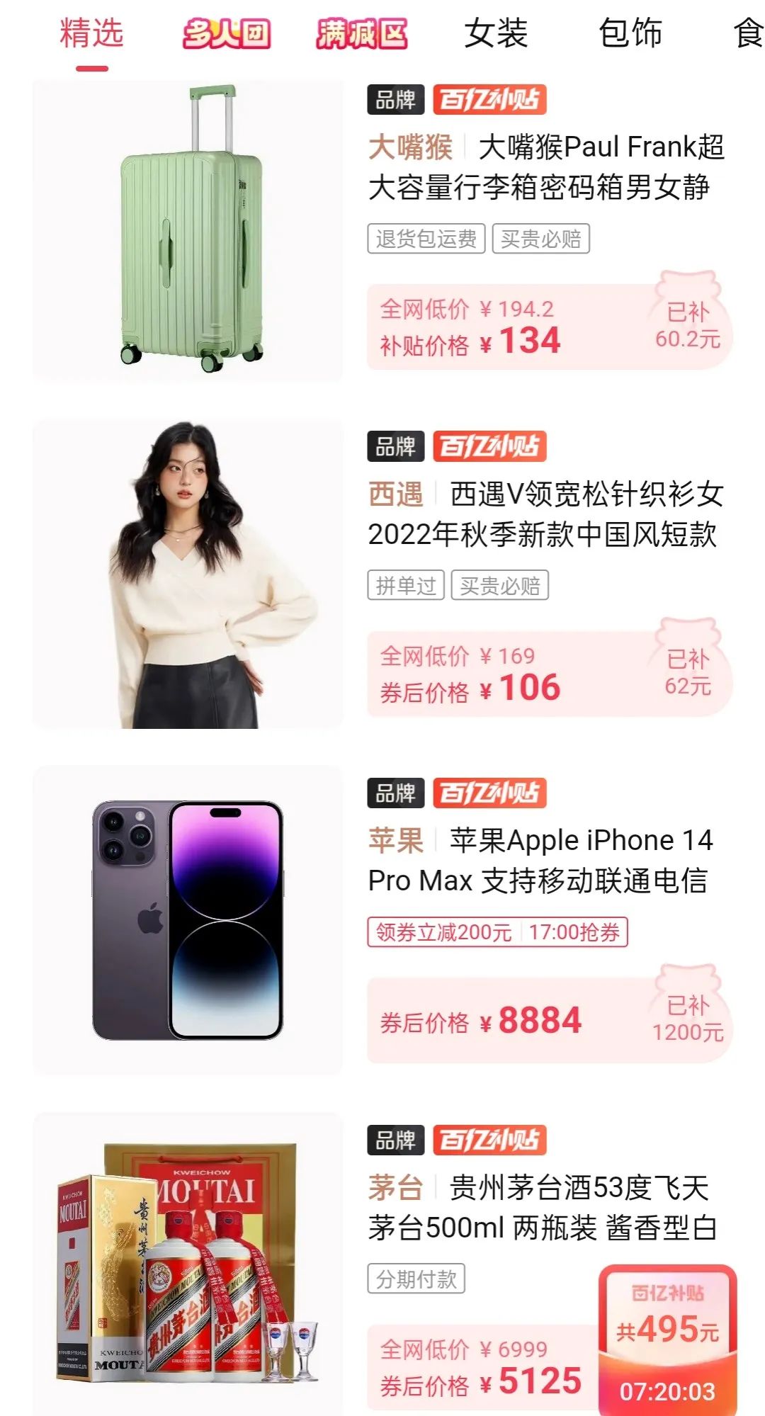 而在直播間之外,拼多多的百億補(bǔ)貼則更加簡(jiǎn)單直接,不用湊單,不用在直播間蹲點(diǎn),直接在平時(shí)對(duì)特定商品進(jìn)行降價(jià)補(bǔ)貼,頗有早期雙11的風(fēng)采。常態(tài)化的百億補(bǔ)貼欄目,也讓拼多多真正實(shí)現(xiàn)了“天天都是雙11”。