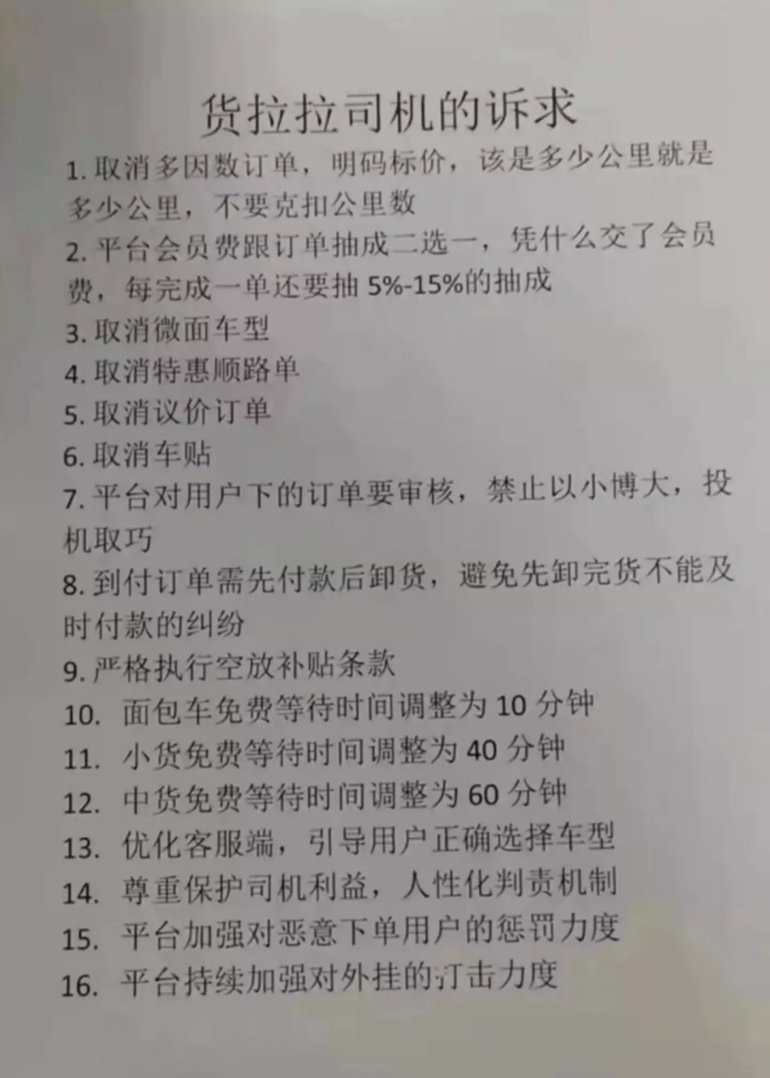 ▲圖:貨拉拉司機(jī)訴求列表