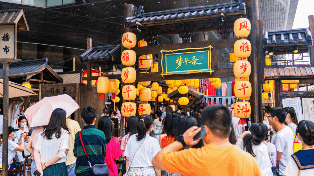 今年6月,隨著《夢(mèng)華錄》的熱播,大悅城率先落地《夢(mèng)華錄》古風(fēng)集市全國(guó)首展,600㎡宋代古風(fēng)集市還原了《夢(mèng)華錄》劇中的名場(chǎng)面,其將劇中北宋時(shí)期的飲食、茶道、音樂、人文等“潮”文化落點(diǎn)線下,消費(fèi)者在觀看展覽可以直接體驗(yàn)古風(fēng)歌舞、漢服巡游、點(diǎn)茶表演、解鎖任務(wù)與NPC互動(dòng)等,吸引了大量劇粉前來沉浸式體驗(yàn),據(jù)悉,整個(gè)《夢(mèng)華錄》古風(fēng)集市沉浸展累計(jì)客流3萬人次,輻射覆蓋客群廣至全國(guó),并且多次登上長(zhǎng)沙同城熱搜榜。