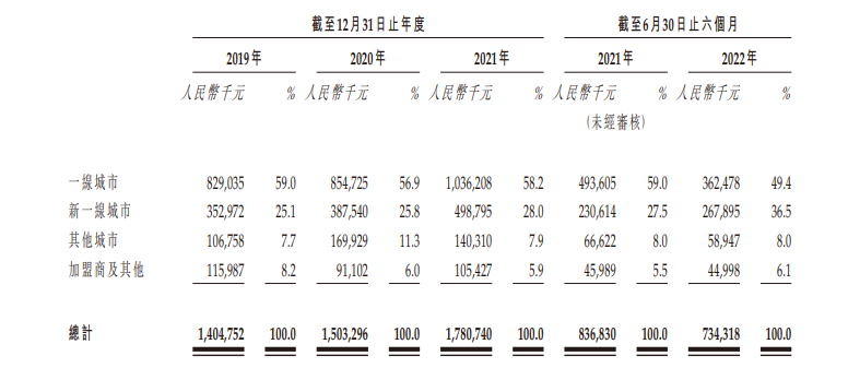 數(shù)據(jù)顯示,2019年-2022年上半年,加盟費(fèi)產(chǎn)生的收益分別為550萬(wàn)元、430萬(wàn)元、360萬(wàn)元及300萬(wàn)元,分別占美麗田園總收益的0.4%、0.3%、0.2%及0.4%。同期,向加盟商進(jìn)行產(chǎn)品銷(xiāo)售產(chǎn)生的收益分別為7900萬(wàn)元、6660萬(wàn)元、8380萬(wàn)元及3280萬(wàn)元,分別占總收益的5.6%、4.4%、4.7%及4.5%。