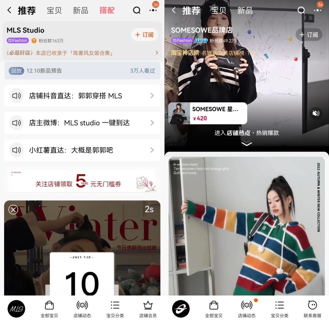3.此前李佳琦不考慮帶貨的淘寶C店,也出現(xiàn)在直播間中。服飾的風格化屬性,李佳琦需要在品牌店之外,拓展更多的C店,也通過雙十二的大促節(jié)點來讓矩陣號快速完成啟動。