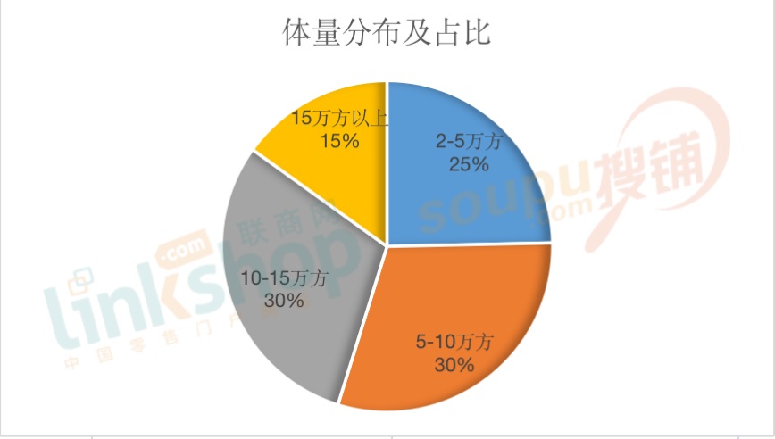 3、商業(yè)體量區(qū)間分布及占比
