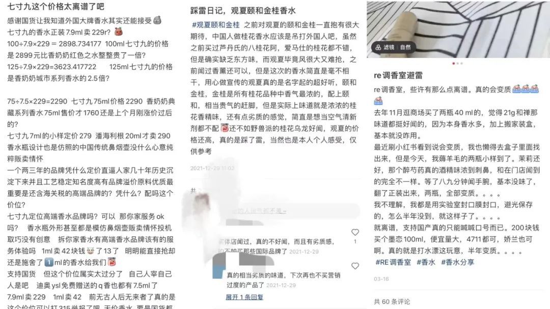 除此之外,許多國產(chǎn)香水品牌的香水留香問題和香氛、香薰的擴(kuò)香問題,以及打的“饑餓營銷”牌,也仍然“勸退”了不少“東方鼻”。而“re調(diào)香室”還面臨著變質(zhì)問題的爭議,在各大社交媒體上,都有網(wǎng)友指出,“避光保存,但不到半年就變質(zhì)了,味道完全不一樣”等。