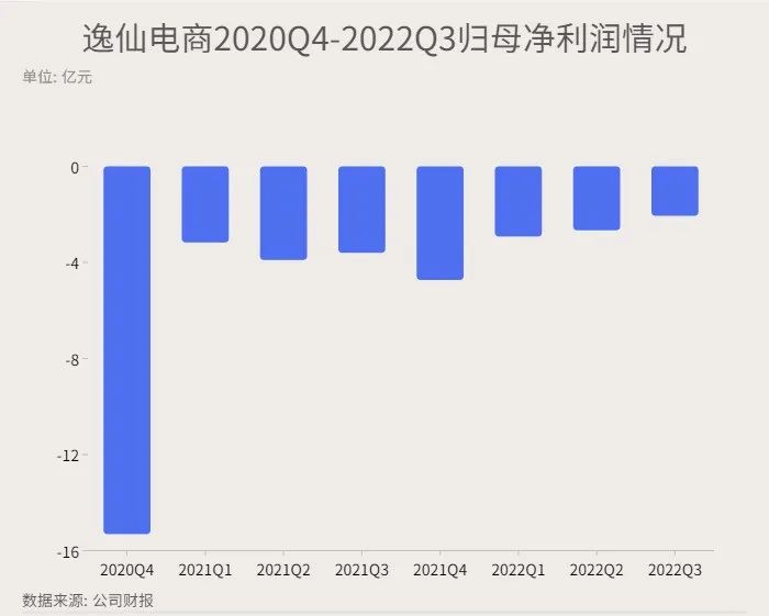 營收下滑和利潤虧損幾乎貫穿逸仙電商每一份財報。從年度看,2020年及2021年,逸仙電商均處于虧損狀態(tài),其歸母凈利潤分別為-26.88億元及-15.41億元。