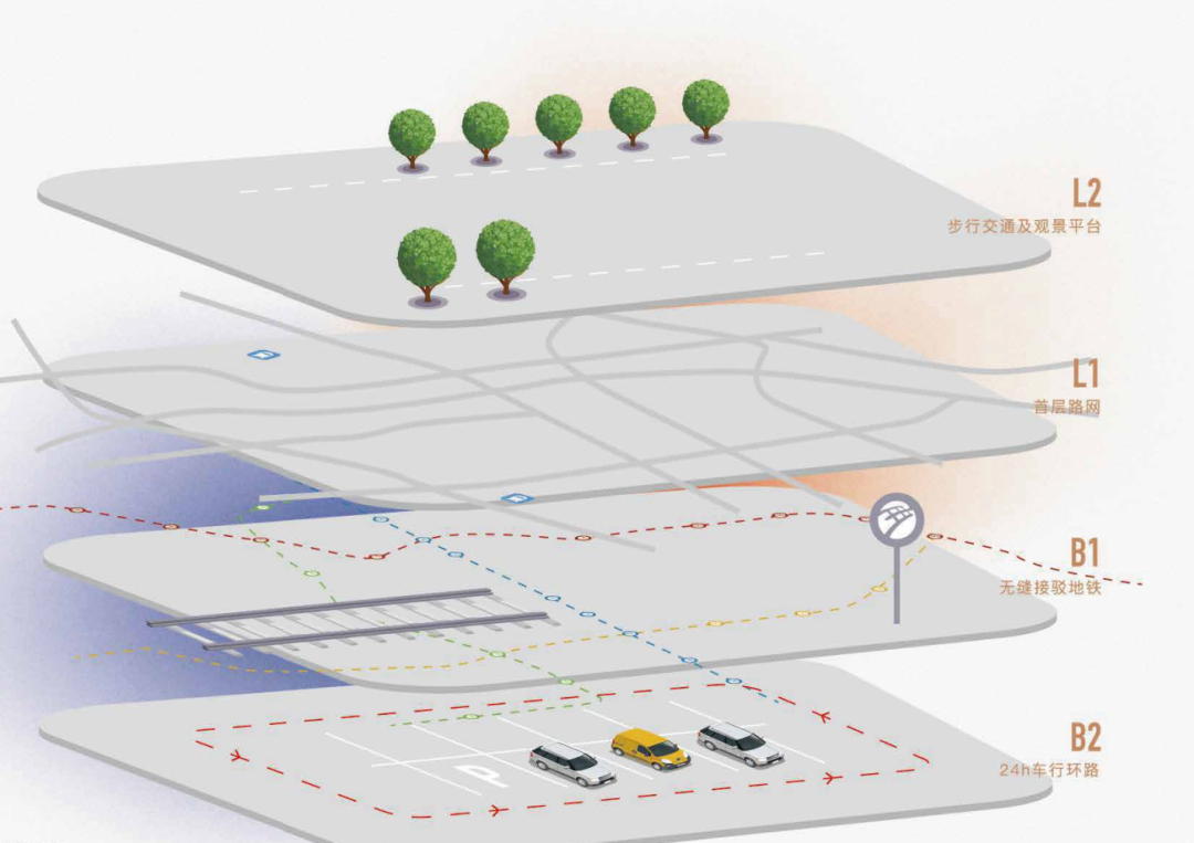 看點七:立體交通網(wǎng),三首層+內(nèi)部連廊互通