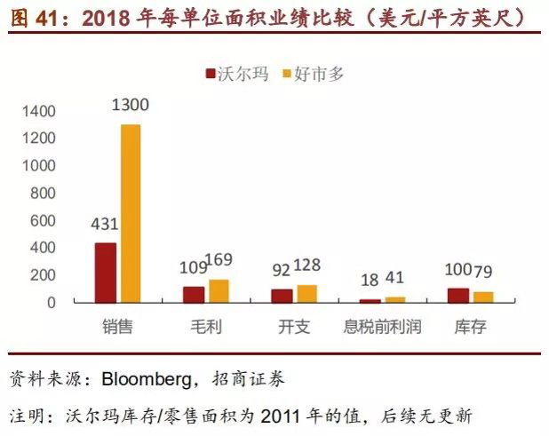 周均坪效大約在270美元。遙遙領(lǐng)先于沃爾瑪和家樂(lè)福的100美元的周均坪效。