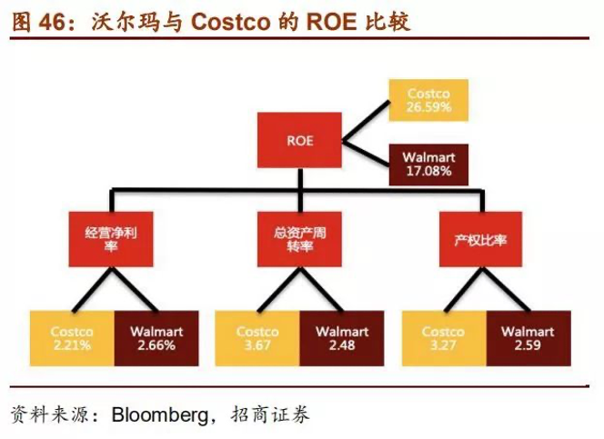 同時(shí),Costco的ROE水平高于沃爾瑪,2018年,Costco的ROE為26.59%,沃爾瑪?shù)腞OE則為17.08%。