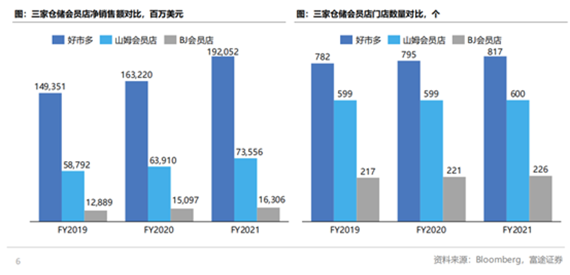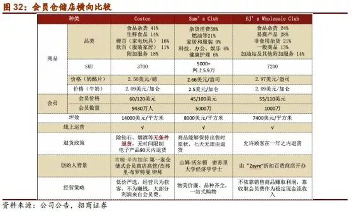始于Price Club,會(huì)員倉(cāng)儲(chǔ)超市效仿者眾多,后期Costco、Sam’s Club和BJ’s Club存活,對(duì)比其他兩家: