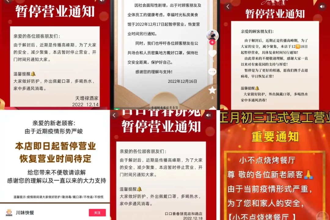 在抖音平臺(tái)上,搜索“餐廳暫停營(yíng)業(yè)通知”關(guān)鍵詞,映入眼簾的均是近幾日全國(guó)各地的餐廳發(fā)出的暫停營(yíng)業(yè)通知,有的餐廳直接放假年后再開(kāi)業(yè)了。