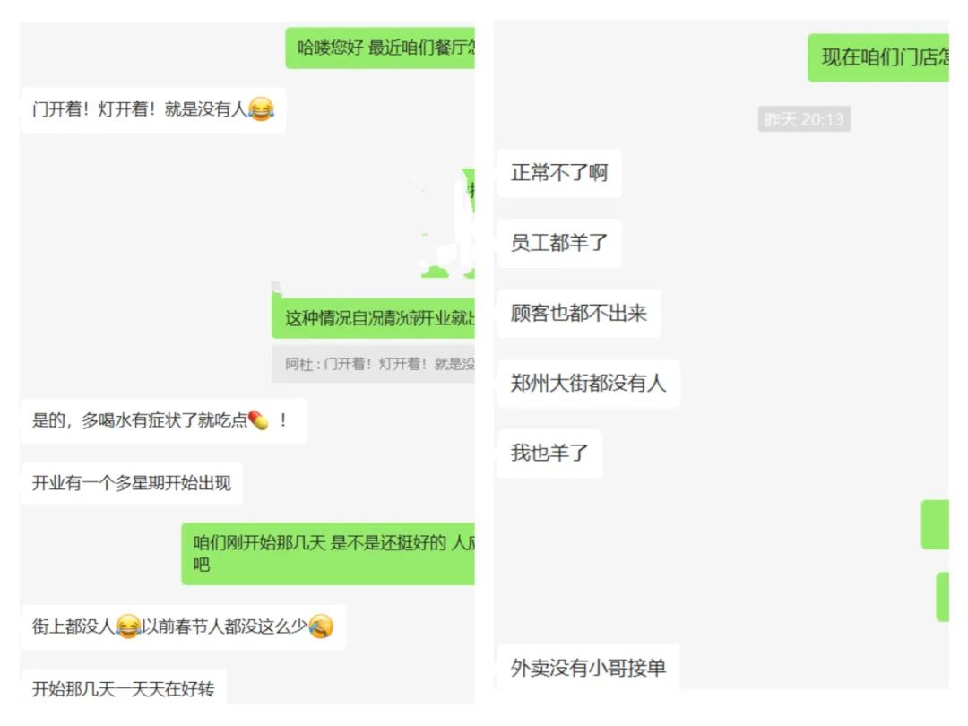 放開(kāi)后的這幾天,餐飲店的堂食營(yíng)業(yè)額更難看了。一位哈爾濱的老板,從“之前就算生意不好的時(shí)候,都有……”慢慢變成“店里一個(gè)人都沒(méi)有,我做外賣(mài)店算了”。