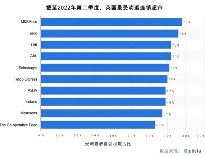 作為2022年全球50大零售商,樂(lè)購(gòu)2022年的全球總收入為548億英鎊,比2021年的534億英鎊上漲了2.5%。