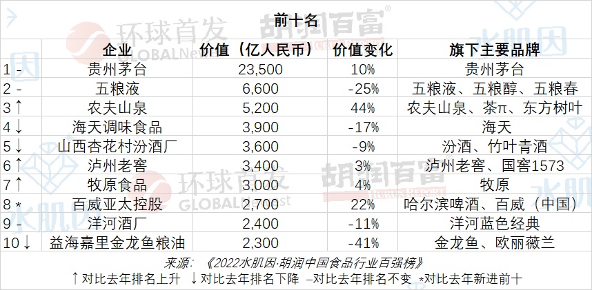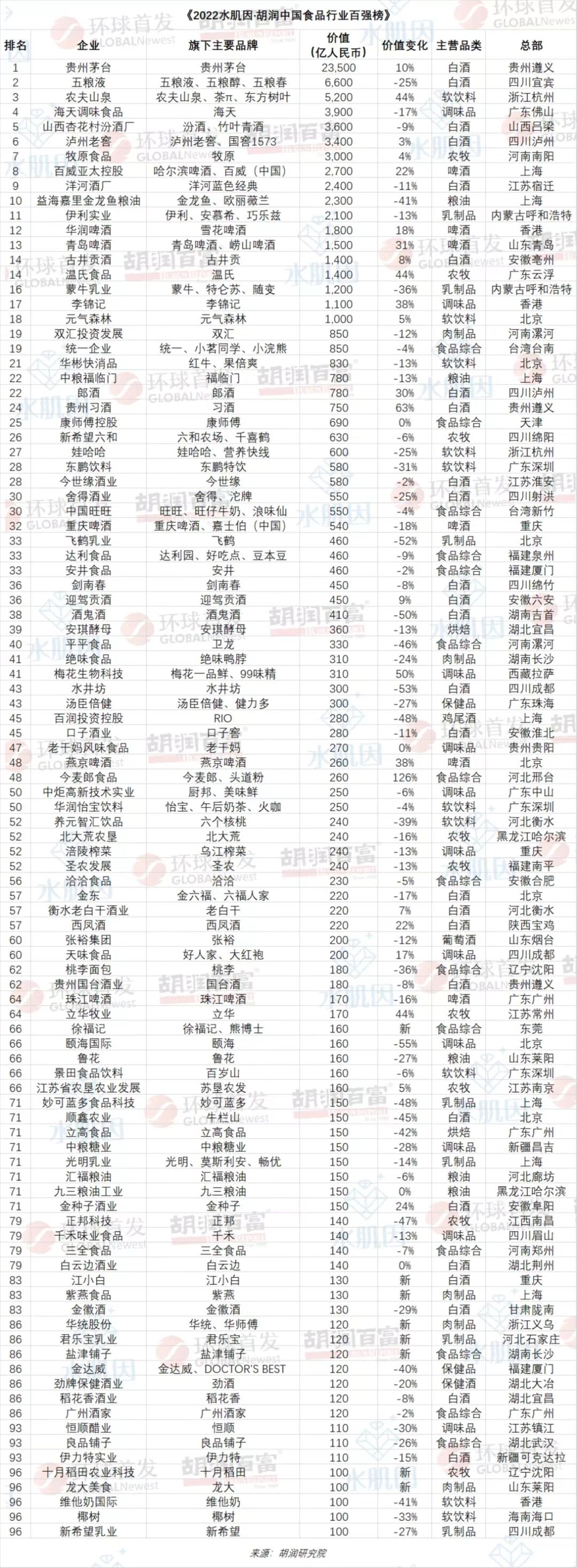 附:《2022水肌因·胡潤中國食品行業(yè)百強榜》