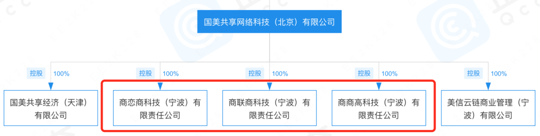 而有意思的是,也是在同一時(shí)間,國(guó)美共享網(wǎng)絡(luò)科技成立商商高科的同時(shí),還分別成立了商戀商科技(寧波)有限責(zé)任公司、商聯(lián)商科技(寧波)有限責(zé)任公司,三家公司不僅名字相似,法人、注冊(cè)資本及經(jīng)營(yíng)范圍均是一樣的。