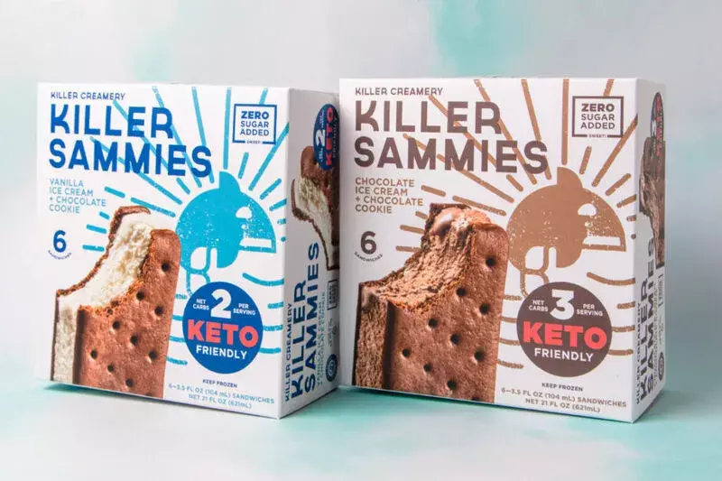 雖然冰淇淋一直被視作高糖產(chǎn)品,但從健康的角度塑造也并非全無(wú)可能。Killer Creamery推出了一款零糖冰淇淋三明治,不含麩質(zhì)和生酮,每份僅含兩到三克凈碳水化合物和五克蛋白質(zhì)。創(chuàng)始人兼首席執(zhí)行官Louis Armstrong說(shuō):" 在開(kāi)發(fā)Killer Sammies時(shí),我們保持了高標(biāo)準(zhǔn),只使用優(yōu)質(zhì)原料,不加糖或人造香料,因此人們可以不受限制地盡情享受!
