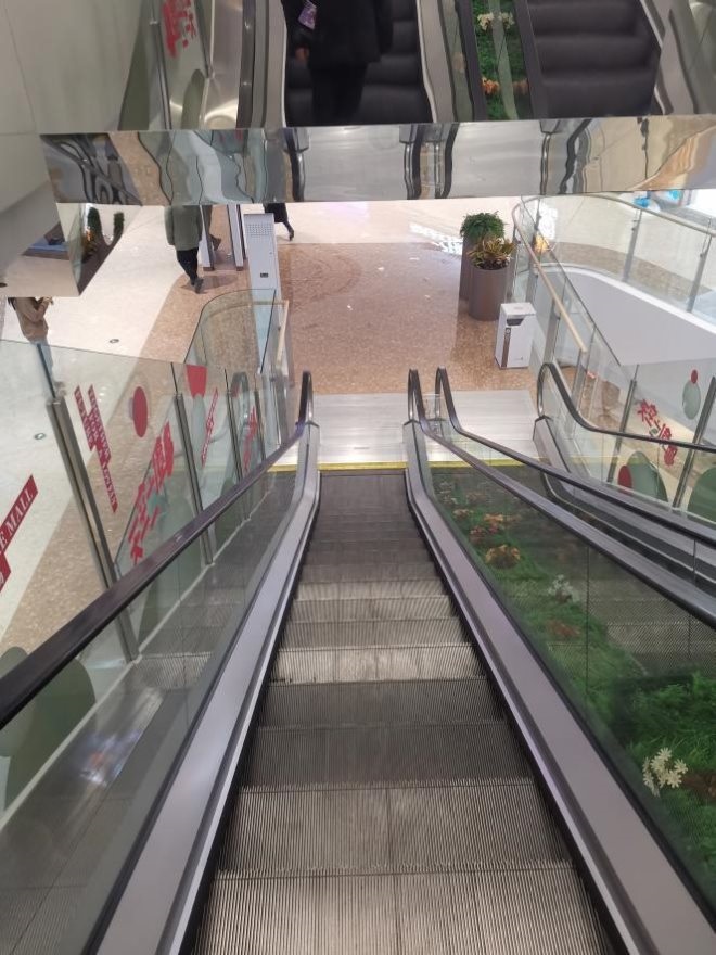 該項(xiàng)目有兩處給我留下了較深印象——飛天梯與天空之境。最早見(jiàn)“飛天梯”是在當(dāng)年的西單大悅城,那時(shí)真可謂壯觀(guān),印象中還有安保人員專(zhuān)項(xiàng)防護(hù),后來(lái)愈發(fā)普遍。但像該項(xiàng)目這種較長(zhǎng)飛天梯的在青島也不多見(jiàn),這也應(yīng)是基于整體樓層較多且直達(dá)樓層為餐飲層而設(shè)。