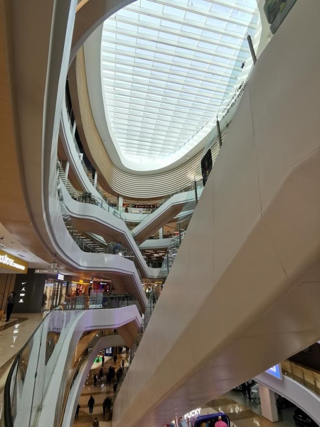 ·層高方面:個(gè)人感覺(jué)似乎有些“矮”,如此選擇也能理解,這樣可以更大限度的提升空間利用率,容納更多內(nèi)容。12萬(wàn)㎡之于商業(yè)綜合體其實(shí)并不大,但它給人的感覺(jué)卻是遠(yuǎn)超體量、有點(diǎn)包羅萬(wàn)象之感。只是層高略低使人有一種壓抑之感,加之燈光過(guò)于追求暖色,讓人難以放松下來(lái),只能說(shuō)有得有失。