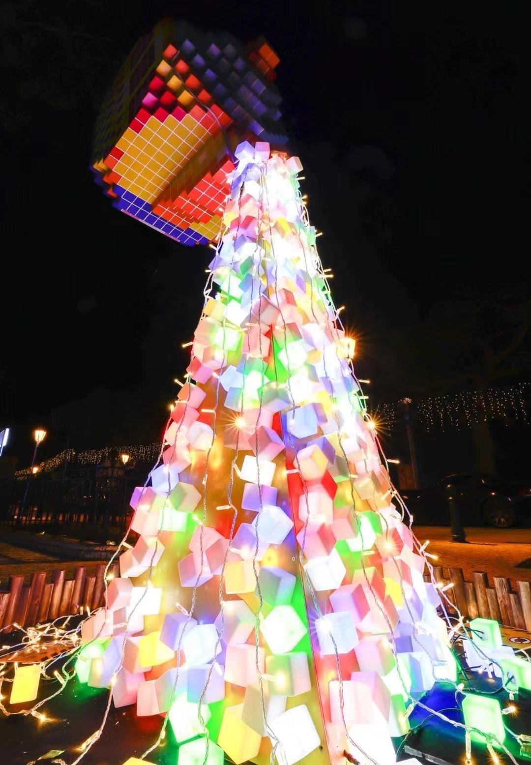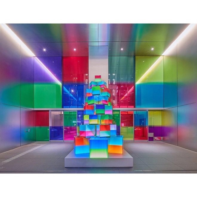 主題:#WARMEST WISHES,最美好的祝愿,今年銀座的圣誕樹不同以往,并非磅礴大氣的類型,該圣誕樹由著名藝術(shù)家YORSHITOTTEN設計,由各種鮮艷的方塊組成。