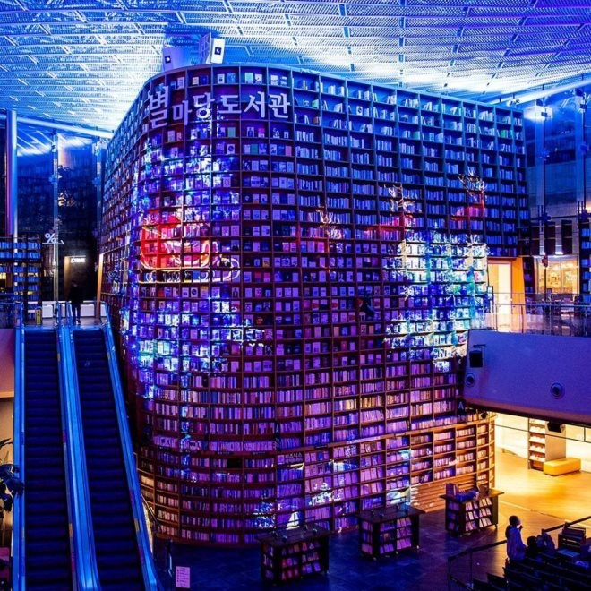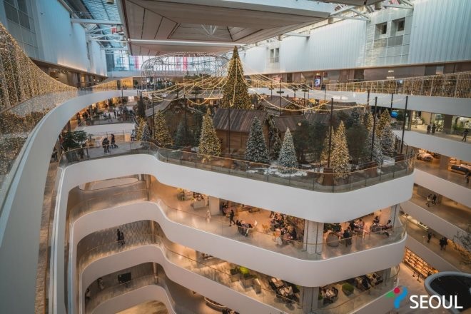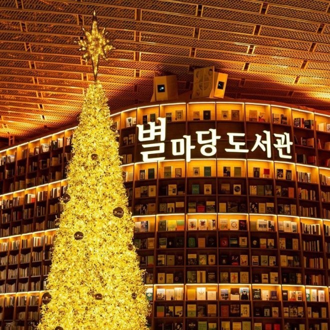主題:#Winter Wonderland,冬日奇緣。今年COEX購物中心的最大亮點是STARFIELD LIBRARY是位于購物中心中央的星空圖書館。填滿整個購物中心廣場的高聳云天的書架以及里面整齊排放的書籍打造出既雄偉又漂亮的風景,在圖書館中央佇立著一顆金色的圣誕樹。