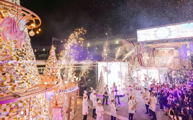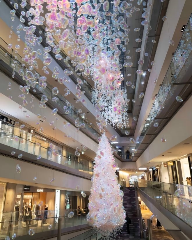 上海靜安嘉里中心開啟“CHERISH THE MOMENT珍愛此刻”圣誕季,商場南廣場中心聳立著20米高的「火樹銀花」被點燃綻放,點亮冬日暖意,閃耀煙花也在商場內(nèi)悄然綻放,從每個扶手到南北連廊,從休息區(qū)到饗識里,各個角落都被煙花元素所裝飾。
