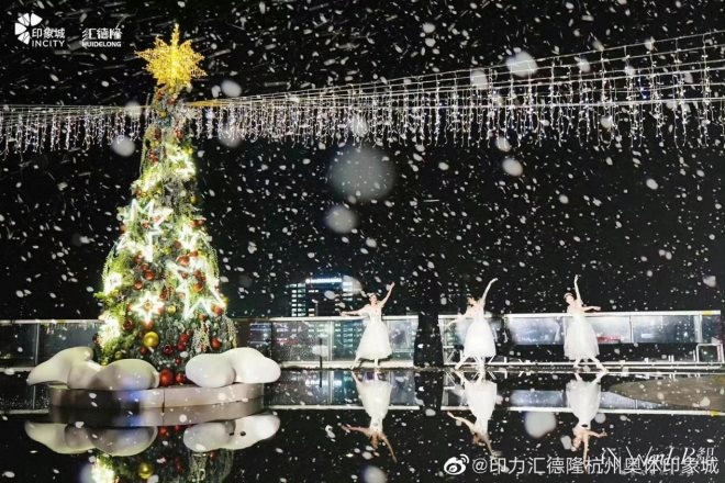 印力匯德隆杭州奧體印象城一樓中庭設置了冬日漫游;五樓設置了禮物局,大型禮物盒子和螢光燈帶續(xù)寫圣誕氣氛;六樓設置了告白廣場,堆滿圣誕禮物的紅鼻子照相館復古時尚。