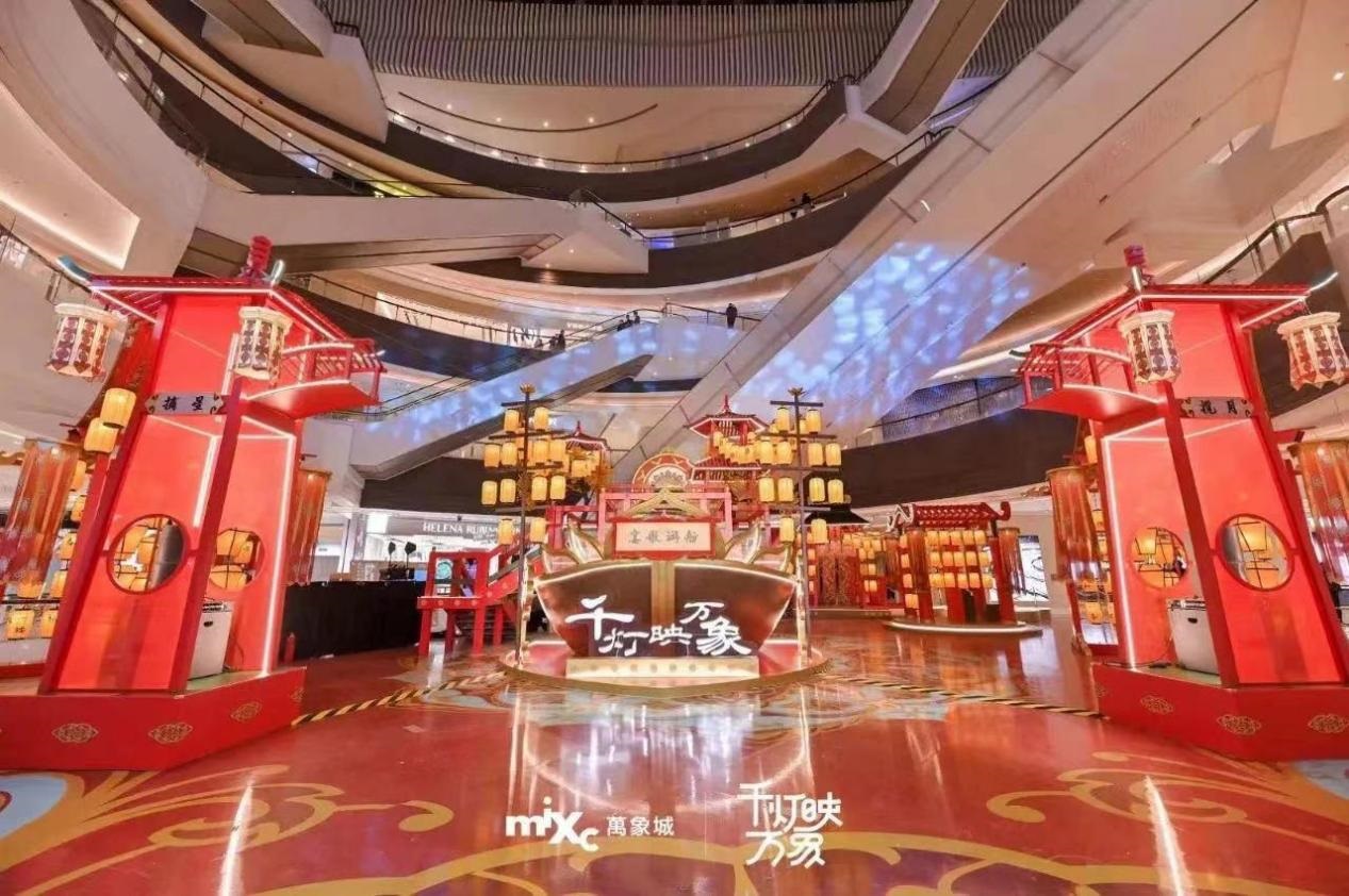 青島萬象城打造千燈映萬象新年主題展,還原熙攘盛世繁華。洋溢新年氛圍的紅色色調(diào),搭配黃燈籠的星星點綴,身著漢服的表演者穿梭在古時場景之中,一派祥和喜氣。