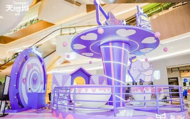 二次元“女明星”酷洛米全國首展在廣州番禺天河城開展,巨型Kuromi中庭開展歡樂派對,奇妙游樂場碰杯轉(zhuǎn)轉(zhuǎn)樂縈繞浪漫與溫馨。