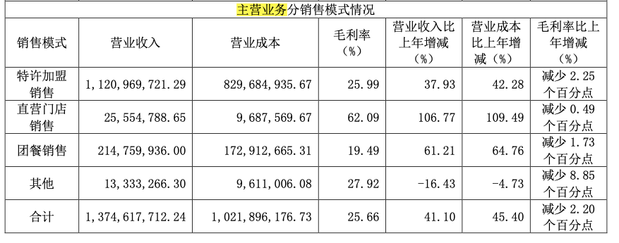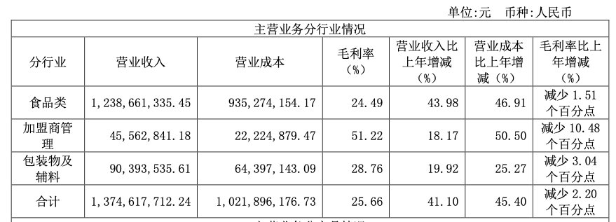 從財報看到,特許加盟店為巴比食品帶來了11.21億的收入。也就是說,上述提到的食品類收入,均為巴比食品向加盟商售出所帶來的。