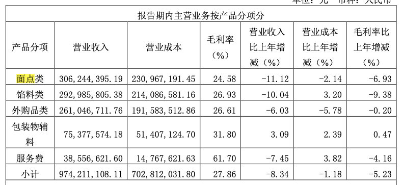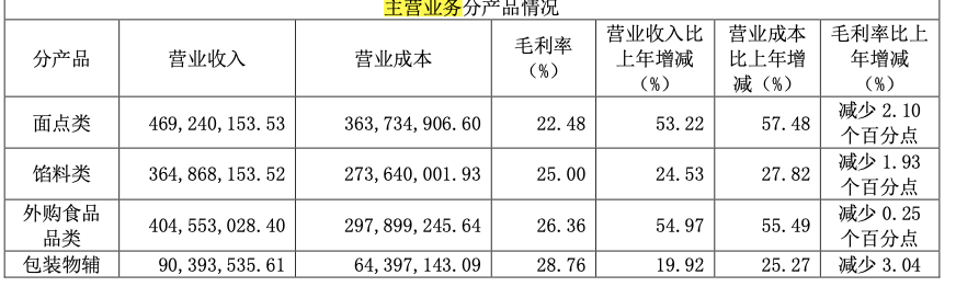2021年,巴比食品面點類產(chǎn)品毛利下降了2.1%,而餡料類毛利下降了1.93%。
