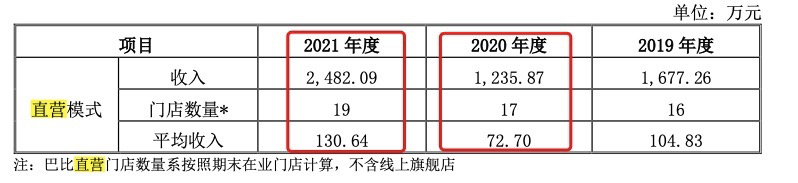 通過財報看到,在去年同期,巴比食品17家直營店年收入共計1235.87萬,疫情恢復(fù)后,增加了2家店的同時,業(yè)績很快增加2482.09萬。