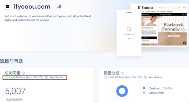 但I(xiàn)fYooou目前面臨著流量下滑的危機。SimilarWeb數(shù)據(jù)顯示,IfYooou在6月的網(wǎng)站訪問量有351.7K,7月增長到了436.7k,但是到了8月流量開始直線下跌,降幅將近60%,回落到了177.1k,到了10月,流量僅有5007了。