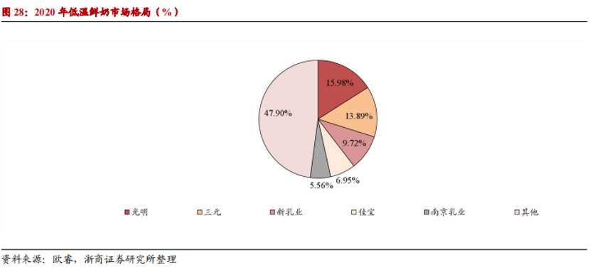 不過,面對著低溫奶市場這一“最后一場牛奶戰(zhàn)爭”,伊利股份并不擅長。根據(jù)浙商證券數(shù)據(jù),2020年低溫鮮奶領(lǐng)域國內(nèi)三強依次為光明乳業(yè)、三元股份以及新乳業(yè),三者市占率分別為15.98%、13.89%和9.72%,伊利股份未進入到行業(yè)前五。