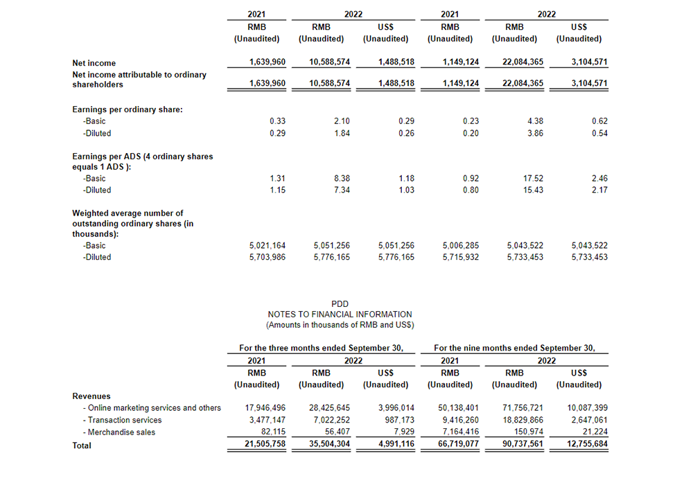 11月28日,拼多多公布截至9月30日未經(jīng)審計(jì)的前三季度財(cái)報(bào)。財(cái)報(bào)顯示,拼多多第三季度總收入為355億元,與去年同期相比增長65%,大幅高于市場預(yù)期的309億元;前三季度總營收為907億元,與去年同期相比增長36%。