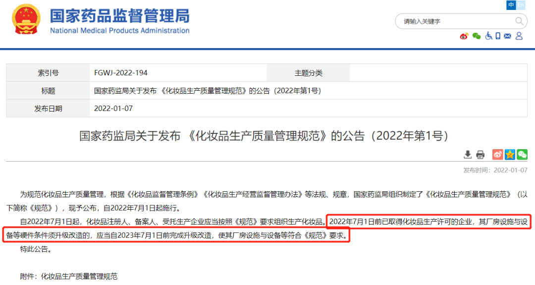 也就是說,留給化妝品生產(chǎn)企業(yè)升級(jí)改造生產(chǎn)車間的時(shí)間不多了。