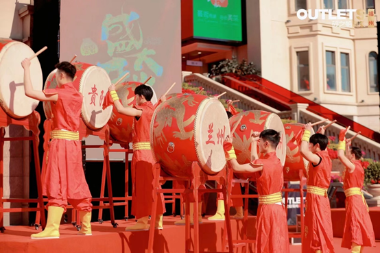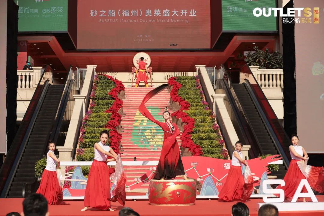 上午10時(shí)28分,鏗鏘有力的威風(fēng)鼓表演拉開了砂之船(福州)奧萊盛大開業(yè)啟幕儀式的序幕。