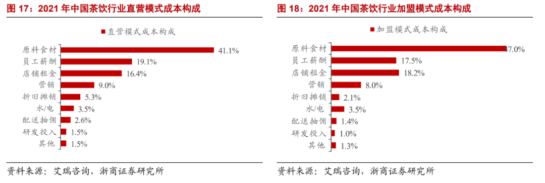 圖:中國茶飲行業(yè)成本構(gòu)成,來源:艾瑞咨詢,浙商證券研究所